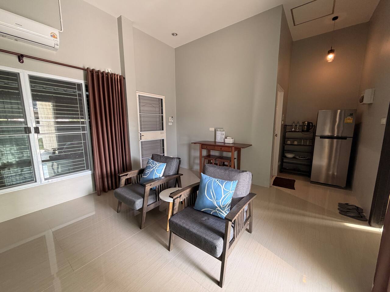 Attached one-bedroom home with living room and kitchen. Centrally located with easy access to town, highway 11 to Chiang Mai, and Nong Krathing Park. This neighborhood is perfect if you’re looking for a balance of quiet and convenience. Just up the street you can find water buffaloes and cows grazing, yet the clock tower intersection is an easy 5 minute drive away. Enjoy the freedom to cook or brew your morning coffee in your own private space. Room B2