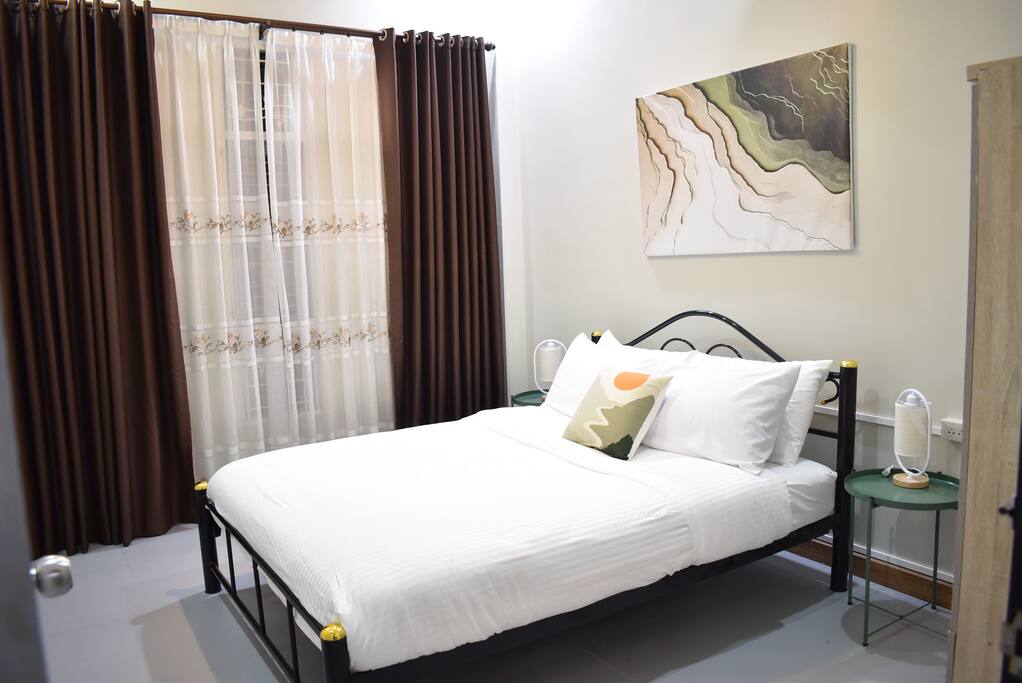 Attached one-bedroom home with living room and kitchen. Centrally located with easy access to the city, highway 11 to Chiang Mai, and Nong Krathing Park. This neighborhood is perfect if you’re looking for a balance of quiet and convenience. Just up the street you can find water buffaloes and cows grazing, and yet the clock tower intersection is a quick 5 minute drive away. 7-Eleven and BigC mini are 650M away, and there are several cafes and small restaurants within walking distance.