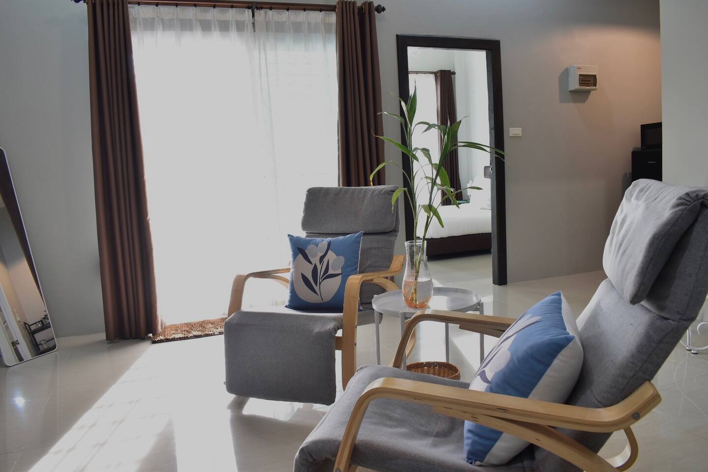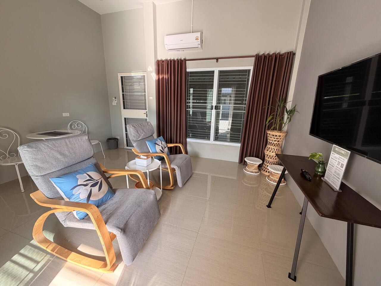Attached one-bedroom home with living room. Centrally located with easy access to town, highway 11 to Chiang Mai, and Nong Krathing Park. This neighborhood is perfect if you’re looking for a balance of quiet and convenience. Just up the street you can find water buffaloes and cows grazing, yet the clock tower intersection is an easy 5 minute drive away. Welcome to Khwanlom House!