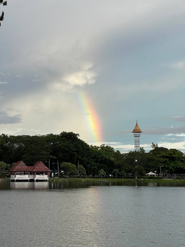Nous avons passé 5 nuits à Khawnlom House et nous serions volontier resté plus longtemps si nous en avions eu la possibilité. La situation du logement au bout d' une petite impasse tranquille en fait un lieu extrêmement calme. C'est l'endroit idéal pour se reposer.